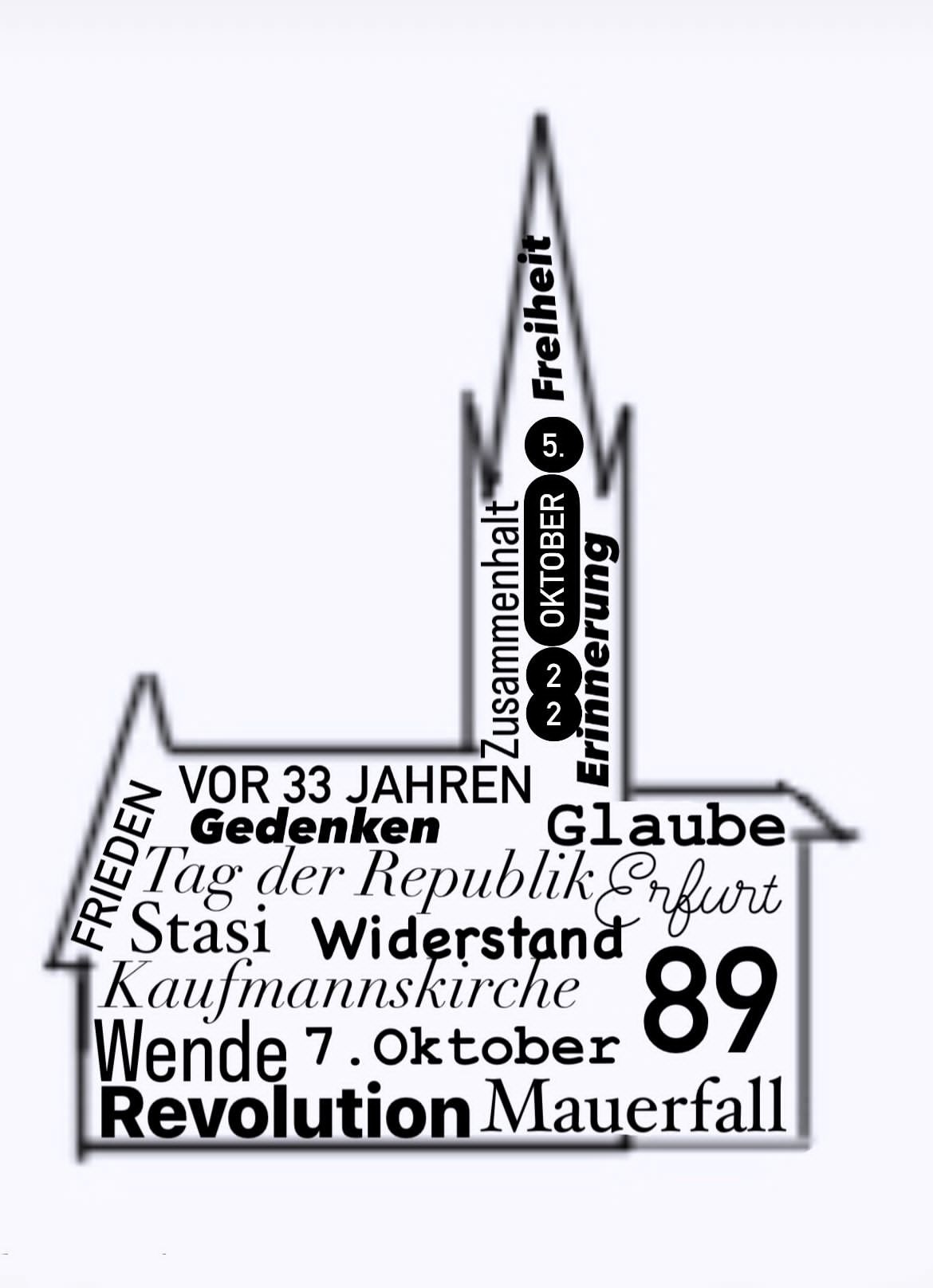 am 7. Oktober 1989 fand im Rahmen der Friedlichen Revolution in der Kaufmannskirche in Erfurt ein besonderes Ereignis statt. Der sogenannte doppelte Gottesdienst, bei dem sich hunderte Menschen für Freiheit engagierten, ist bis heute ein besonderer Tag in der regionalen Geschichte Erfurts. Die Versammelten forderten Raum für freie Meinungsäußerung, Versammlungsfreiheit, freie Wahlen sowie Reisefreiheit. Den Menschen war klar, dass sich etwas ändern musste. Da sehr viele Bürger:innen dieser Meinung waren und die gleichen Ziele verfolgten, kamen so viele Menschen zusammen, dass der Gottesdienst am gleichen Tag noch einmal wiederholt werden musste.