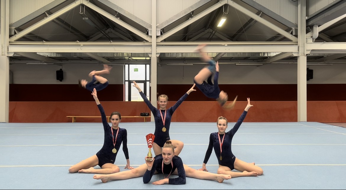 Am 9. März sind wir, Freda, Luise, Maris (8L1), Marlene (8L2), Annik und Alma (9L2), im Landesfinale des Turnens von Thüringen angetreten. Es wurde am Balken, Boden, Stufenbarren und Sprung geturnt. Am Ende haben wir den ersten Platz mit insgesamt 141 Punkten belegt. Die Tageshöchstwertung, an allen Geräten, hat Freda geholt. Nun vertreten wir unsere Schule und Thüringen im Bundesfinale in Berlin.