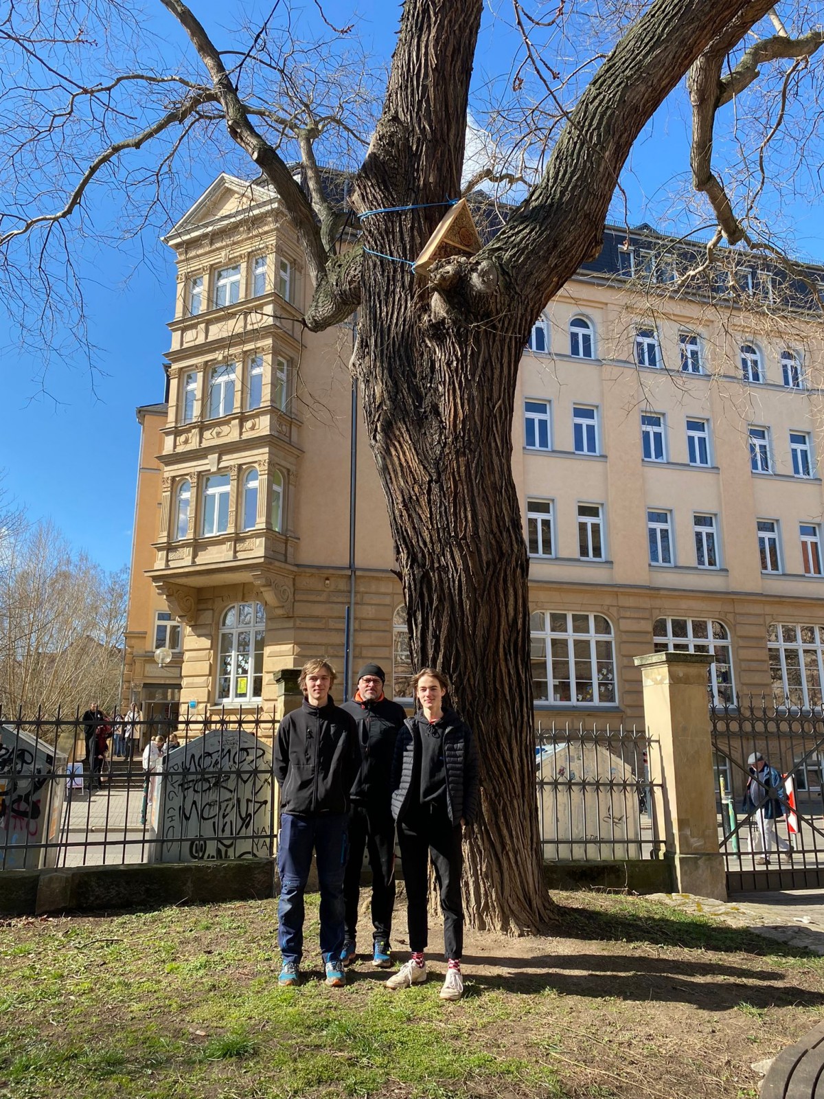 Zusammen mit Herrn Brandenburg und Frau Neumann haben wir in der Projektwoche beim Bienen-Projekt 2019 ein Insektenhotel auf der Fuchsfarm Erfurt gebaut. Erst stand es lange Zeit in der Schule, aber jetzt sind wir endlich zum Aufhängen gekommen und die Insekten können es ab diesem Frühjahr nutzen!