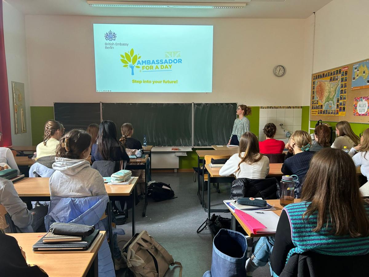 Die Gewinnerinnen von Ambassador for a Day haben die Möglichkeit, von hochrangigen Vertretern der britischen Botschaft zu lernen und Rat von britischen Botschafterin zu erhalten. Ihr werdet auch die Möglichkeit haben, Menschen aus der deutschen Politik zu treffen und ihnen eure Fragen zu stellen.